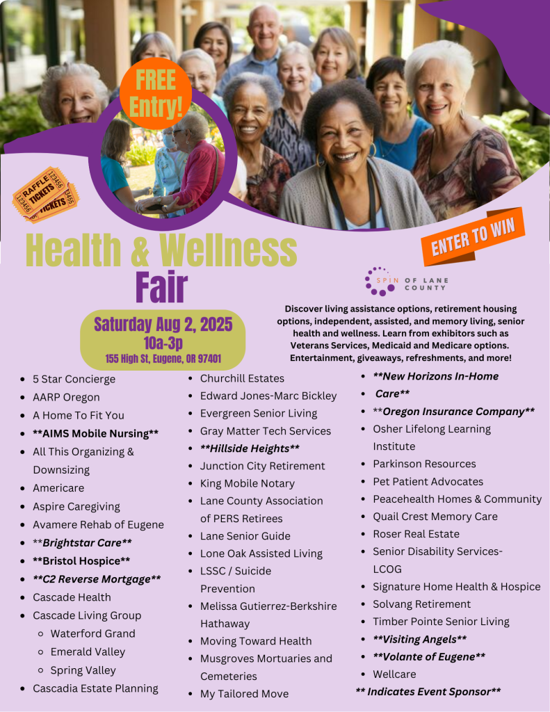Join us for the 2025 SPIN Health & Wellness Fair on Saturday, August 2nd, from 10 AM to 3 PM at 155 High Street in Eugene!
