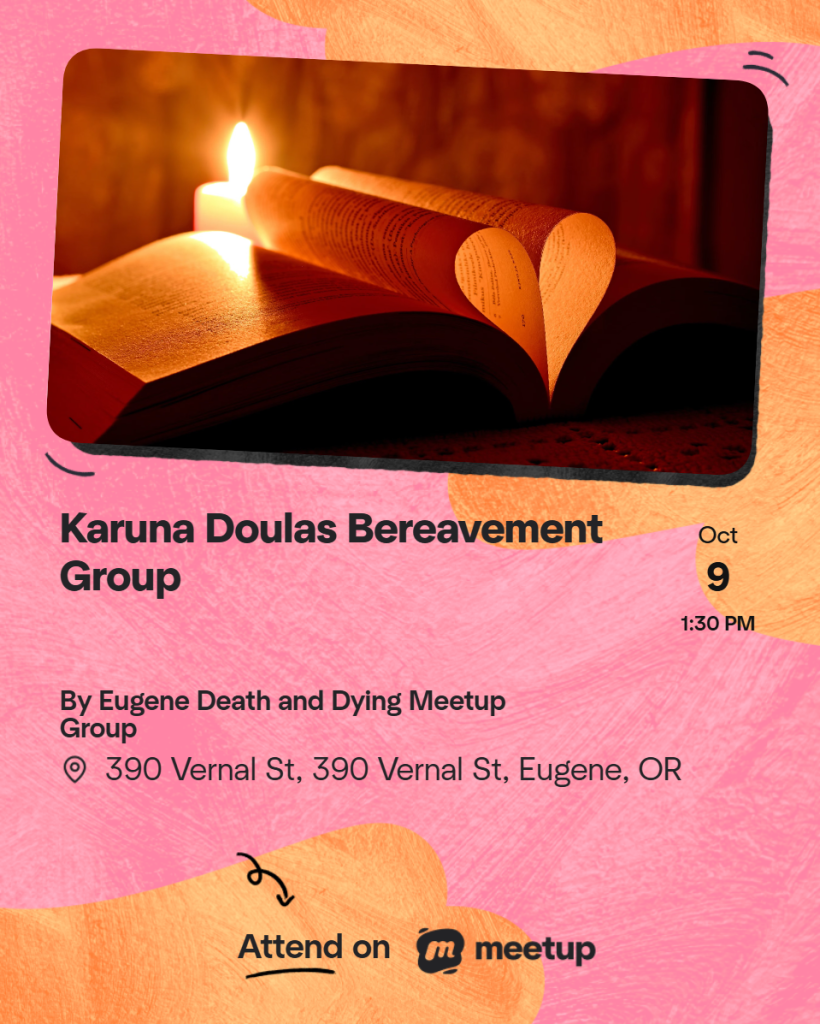 - Facilitated by Karuna Doulas, a Community Death Doula Organization providing guidance and companionship for individuals and families in their end-of-life journeys.