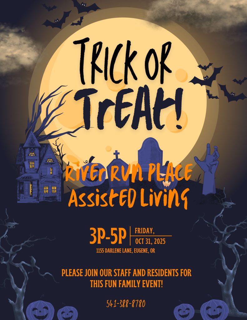 Bring your family and join the fun at River Run Place’s annual Trick-or-Treat celebration! Residents and staff will be handing out candy, sharing smiles, and enjoying the Halloween spirit in a safe, festive environment. Kids of all ages are welcome to come dressed in their favorite costumes for an afternoon of spooky fun, sweet treats, and community connection.